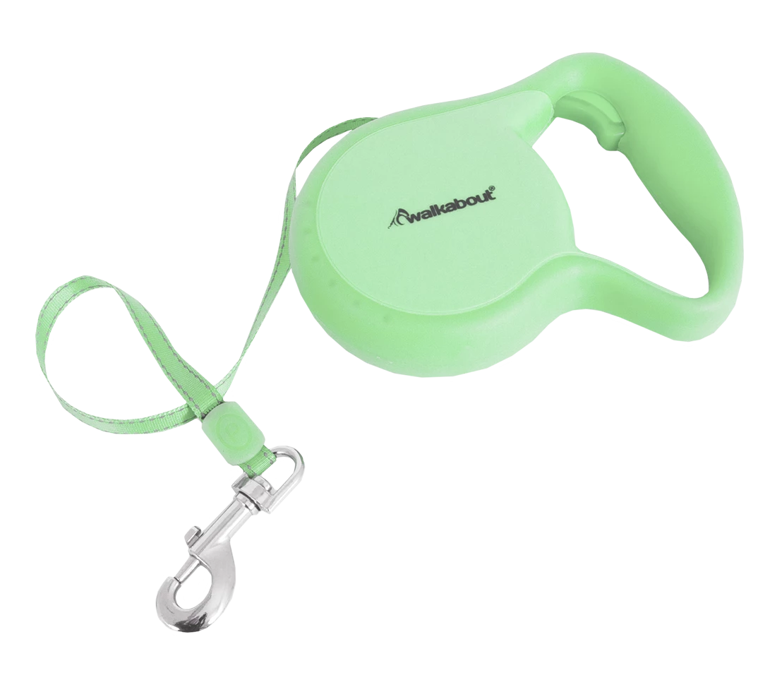 For years, the Walkabout Retractable belts have been known as one of the best of its kind. The patented index finger button allows you to react super fast and the special opening means the cord will never get tangled. The unique soft grip handle gives you optimal control and the extra supplied wrist strap means the belt can never slip off unexpectedly. The snap closure in combination with the swivel makes this belt complete. Equipped with a locking button to stop the in and out of the cord.