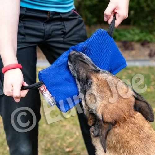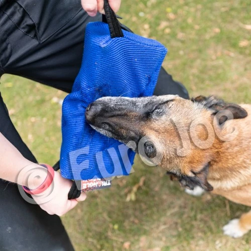 No matter how the cushion comes down, you always have an easy side up to let the dog grab his bitecushion.