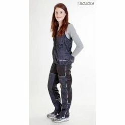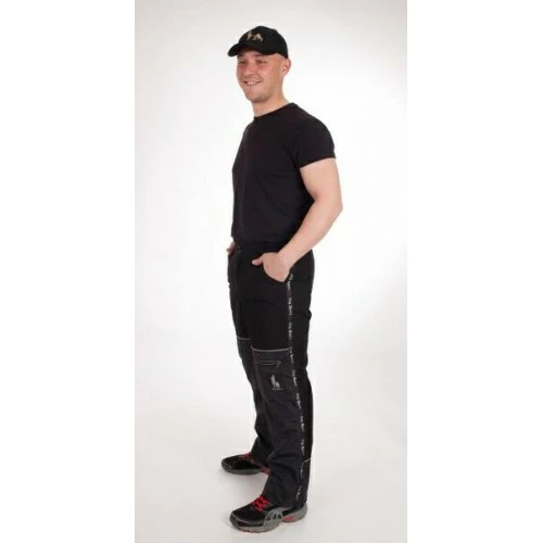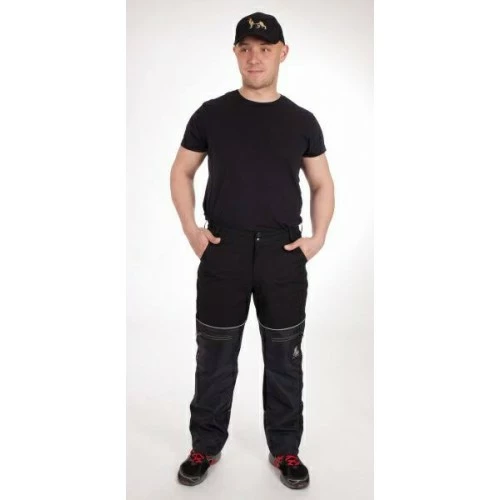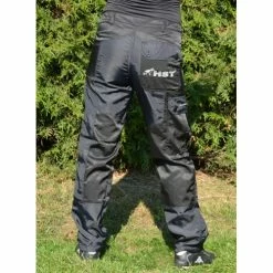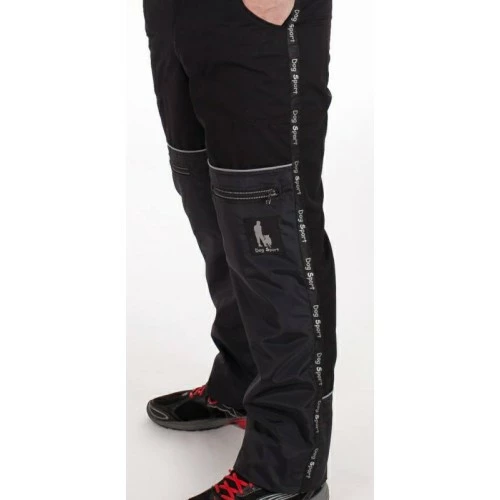 65% cotton + 35% polyester. On the front leg on the thighs and on the back leg to the half of the calves is stitched 100% water repellent polyamide – in places where you usually wipe your dog. So so many on the pants do not stick hairs and possible dirt can be wiped off. Padlock, 2/3 in waist rubber, pants down for download. Pleasant to wear, breathable, durable.